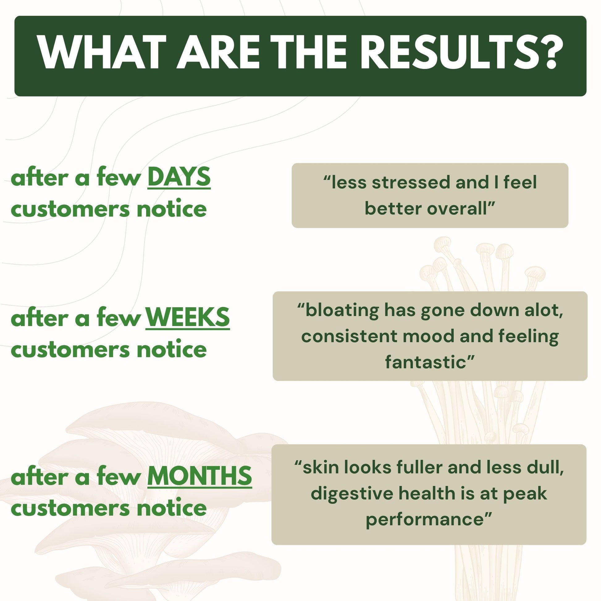 After a few WEEKS customers notice "bloating has gone down alot, consistent mood and feeling fantastic"