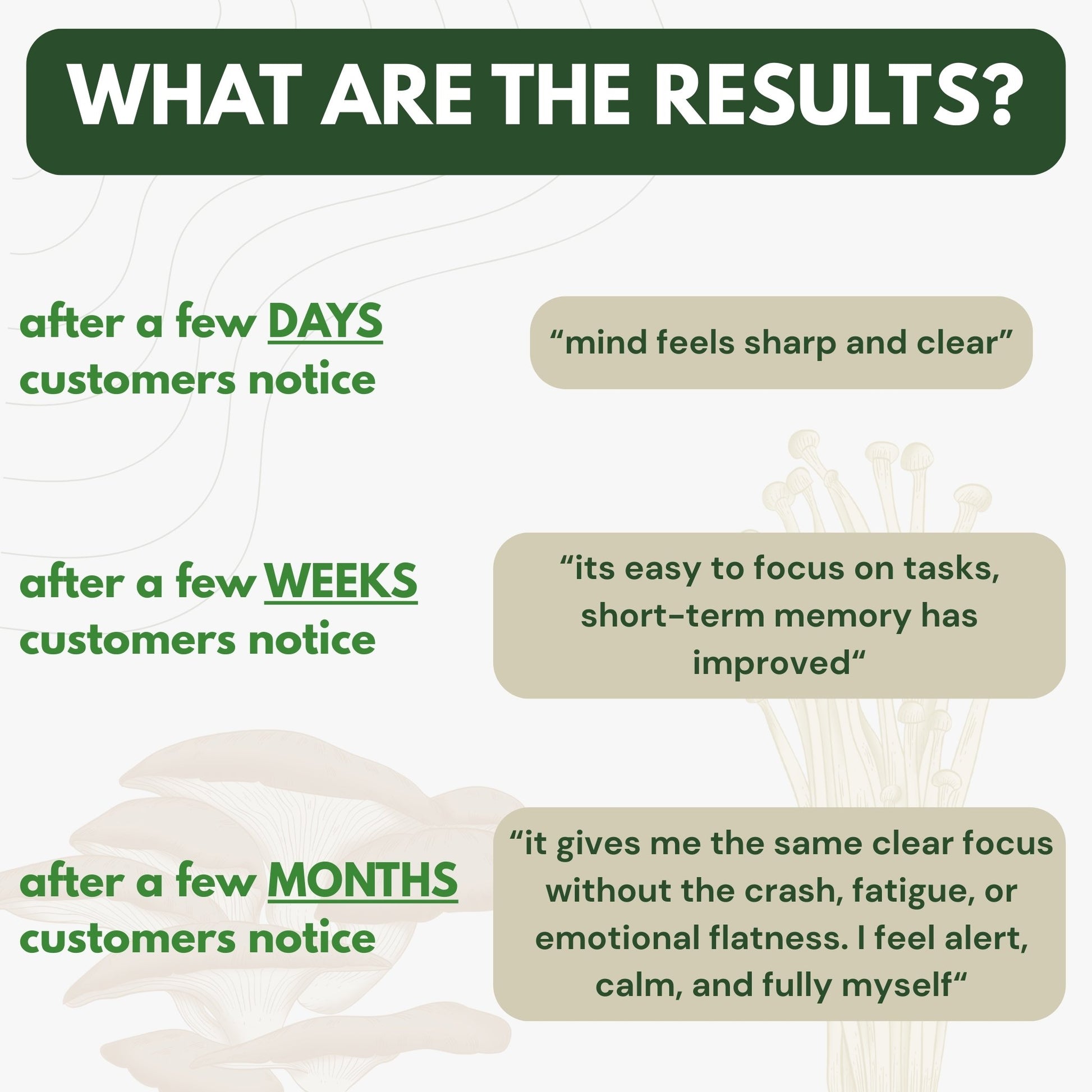 After a few MONTHS customers notice "it gives me the same clear focus without the crash, fatigue or emotional flatness. I feel alert, calm, and fully myself"